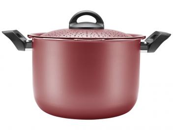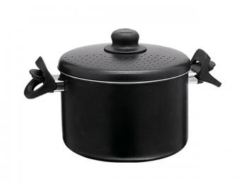 Espagueteira com design antiaderente com tratamento em 05 camadas, feita em alumínio, acompanha tampa para escorrimento, pegador baquelite antitérmico com travas para escorrimento, tampa com sáda a vapor, capacidade de 5,4 litros