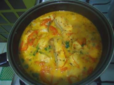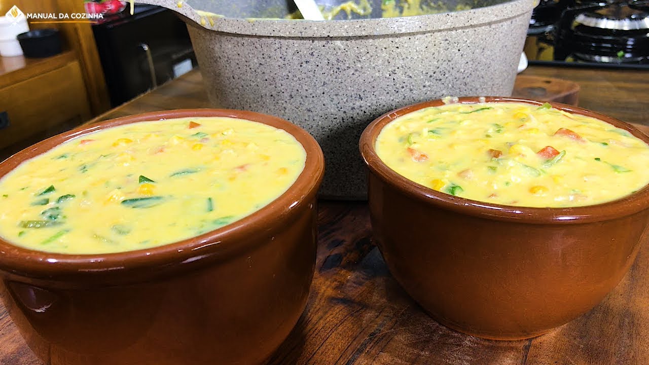 Bata no liquidificador até obter um creme. Volte ao fogo, junte o gengibre e acerte o sal. Reserve. Em outra panela, aqueça o óleo e refogue o restante da cebola e o alho. ...